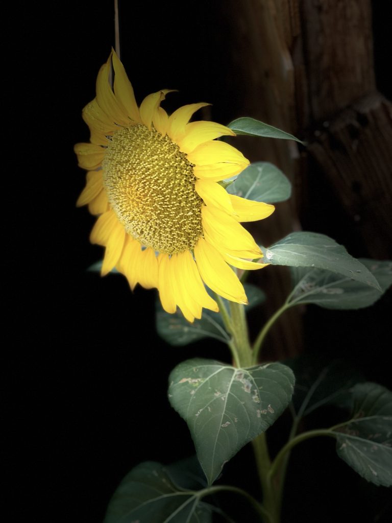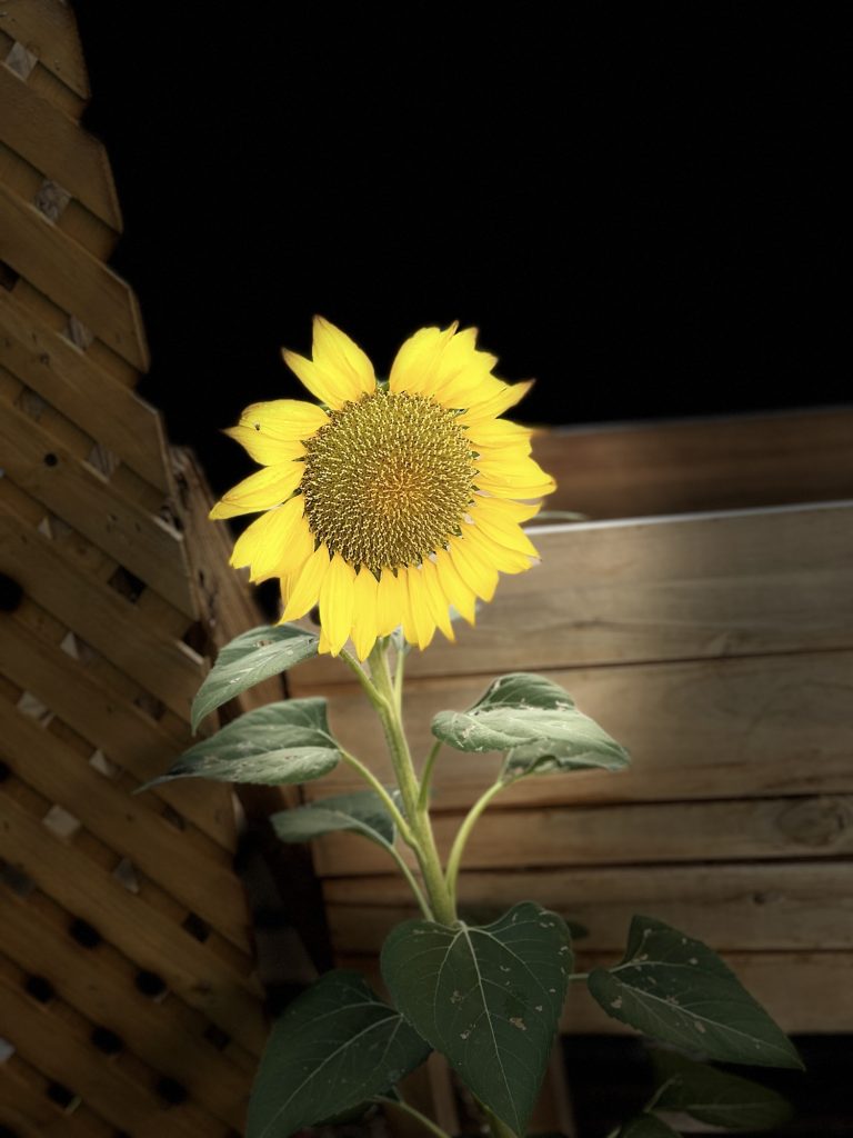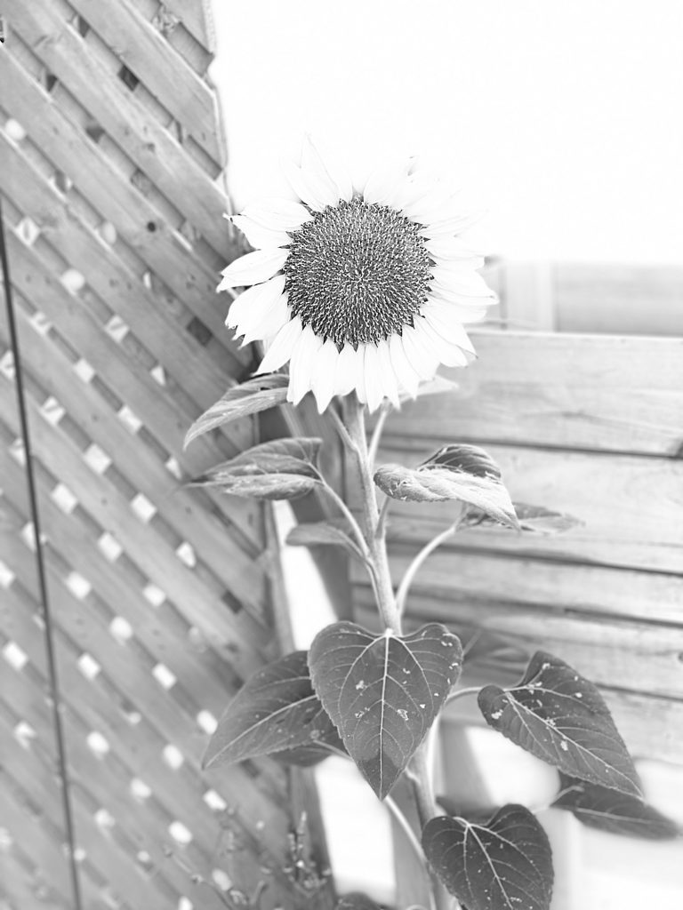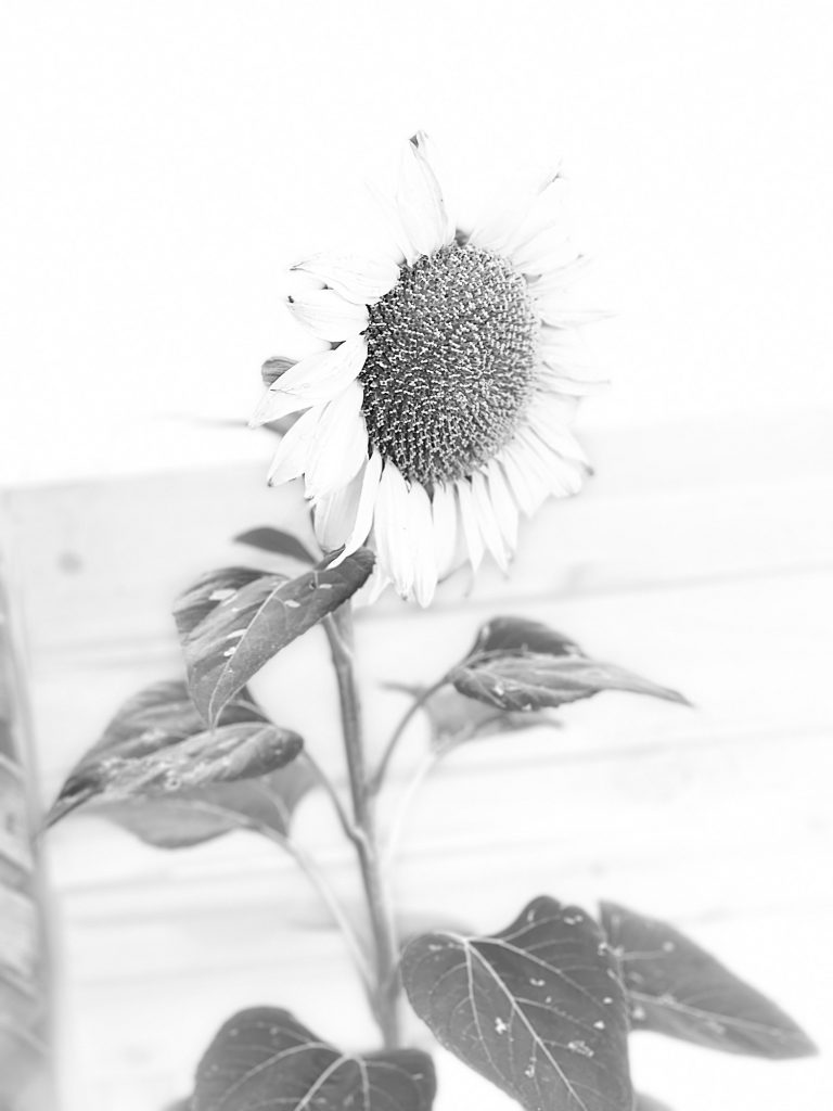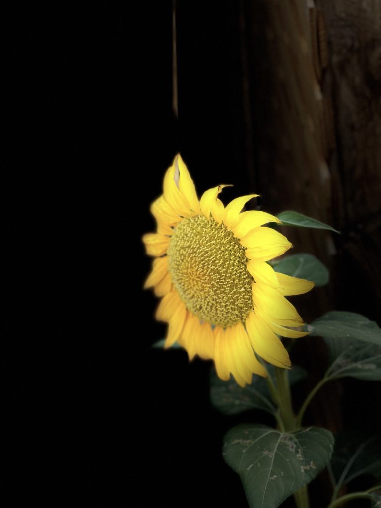This is the sunflower that came up this summer unexpectedly in my yard. I feed the doves and other birds chicken feed and birdseed and that has sunflower seeds. I also have a few mice that eat all of that and so these seeds get carried along….