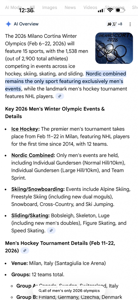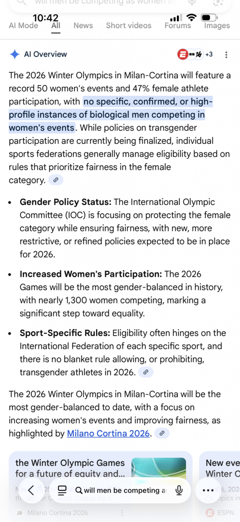Do you think this is true? I really thought that there would be more men competing as women in the Olympics! At least they added more sports for women! That’s super…OMG! At least they don’t have to watch from the candy bar stand right? “Gee I wish we could compete!” “Sorry girls tricks are for boys!”
