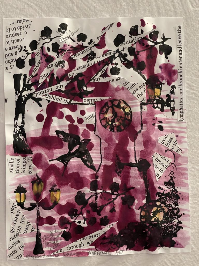 I usually make a print of these but I wanted to keep the color in the original state! I copied a page out of Taber’s cyclopedic medical Dictionary. Try and guess what entry I used! By mlw; Warponie Art