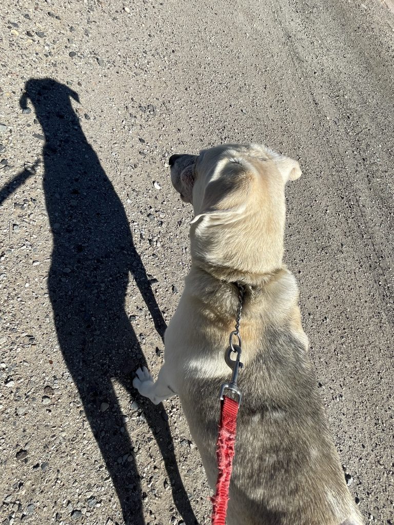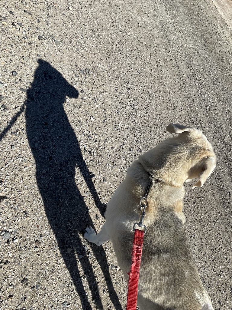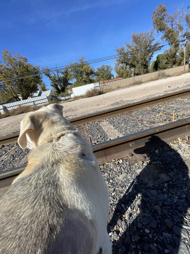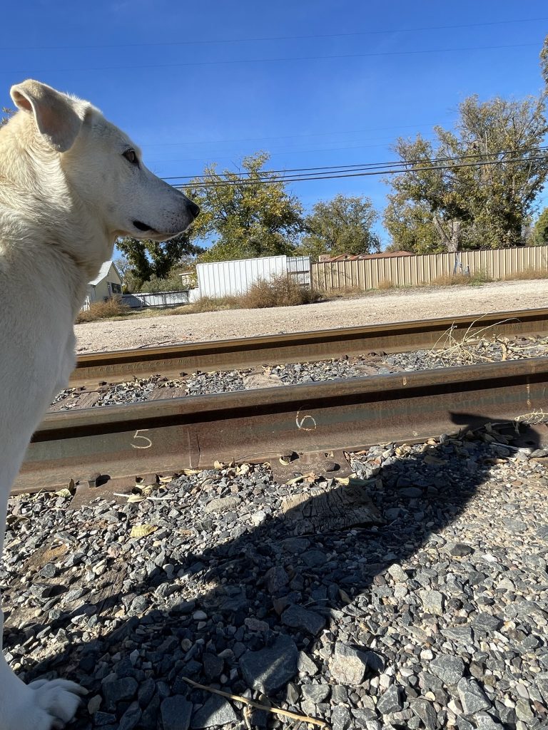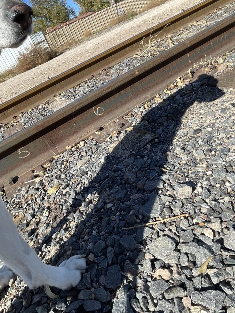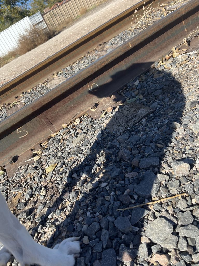 This visitor followed us for a very long time. It started stalking us at the railroad tracks and finally… well it didn’t leave until we turned around and walked the other way. Baby had to stare it down before it would listen.