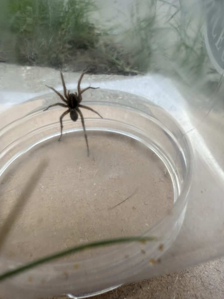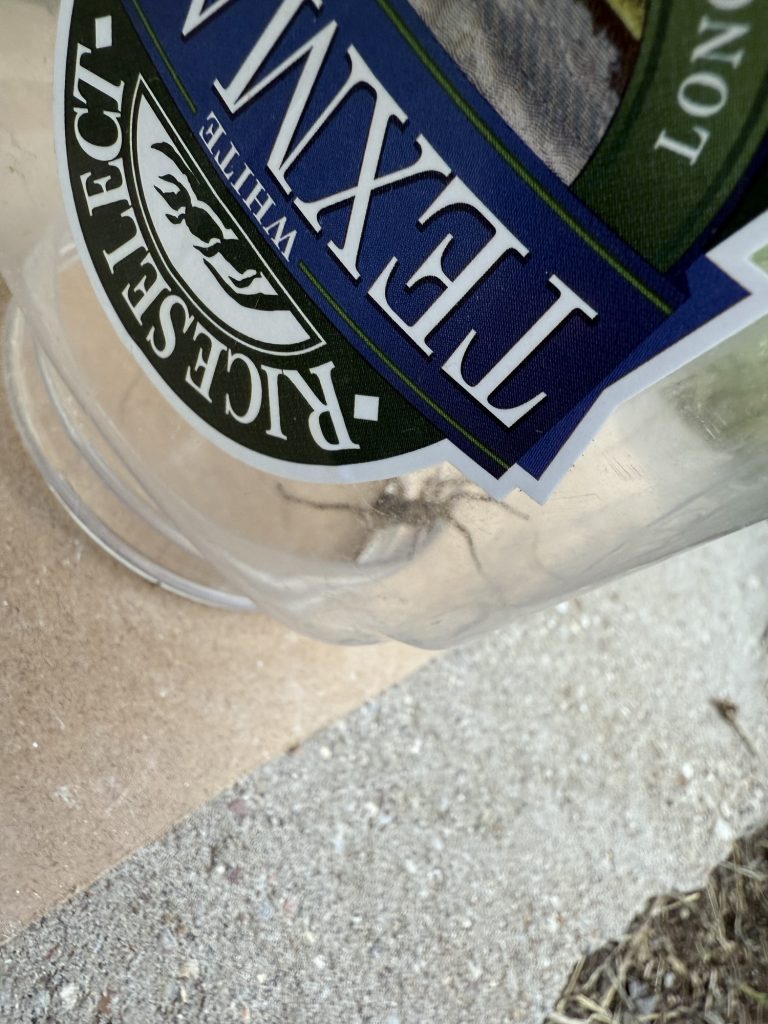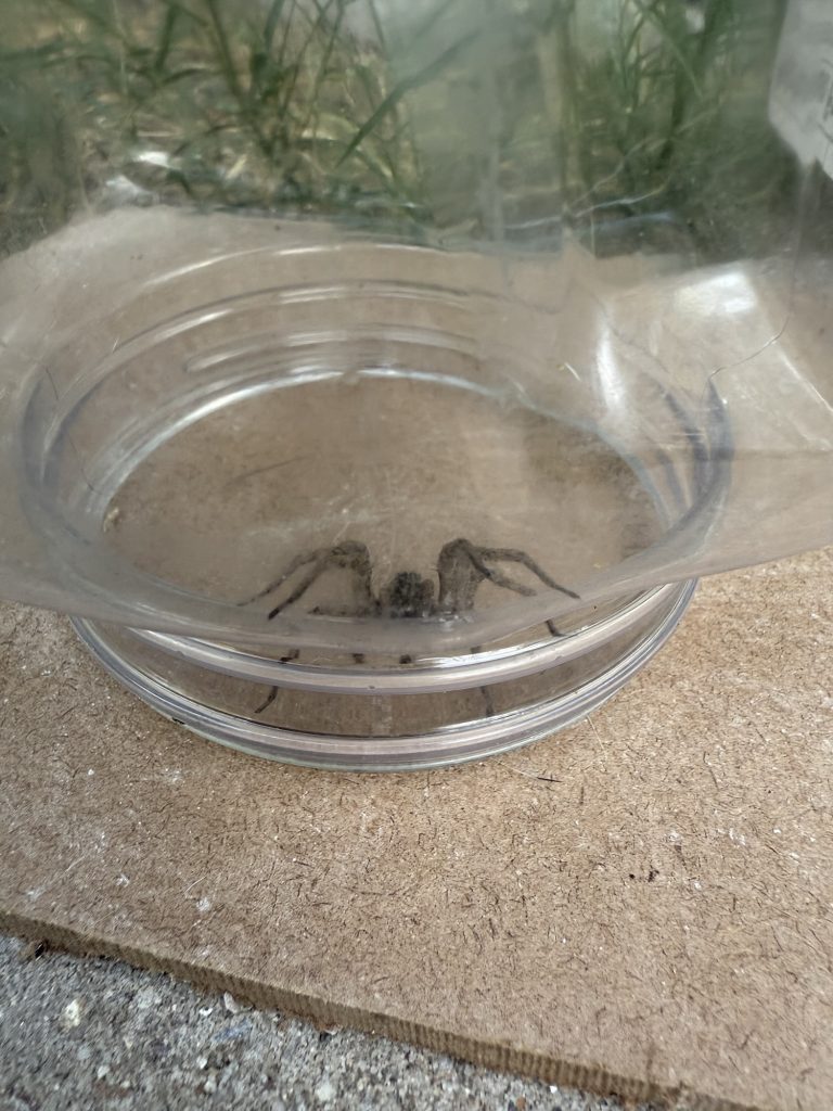 This was a HUGE spider. I thought maybe it was a wolf spider but when I looked it up on my bug identification option, it said it was a domestic house spider. I believe that it was poisonous though, so I am not sure…