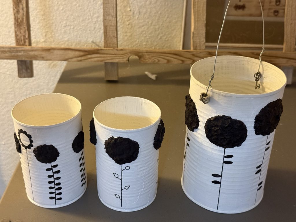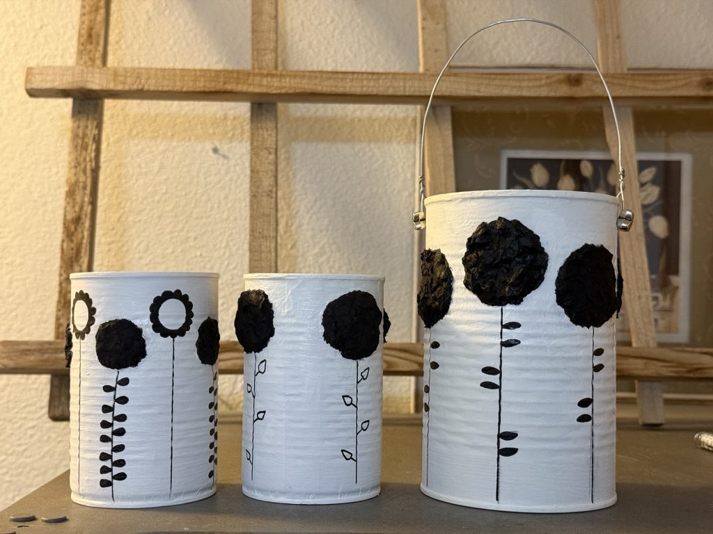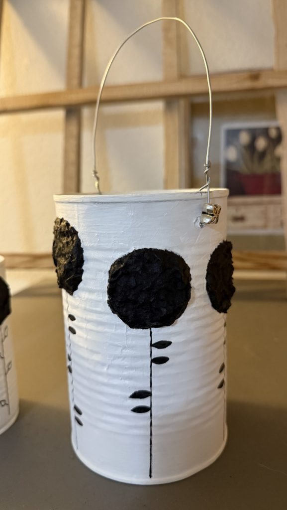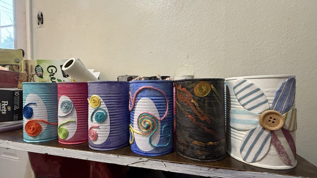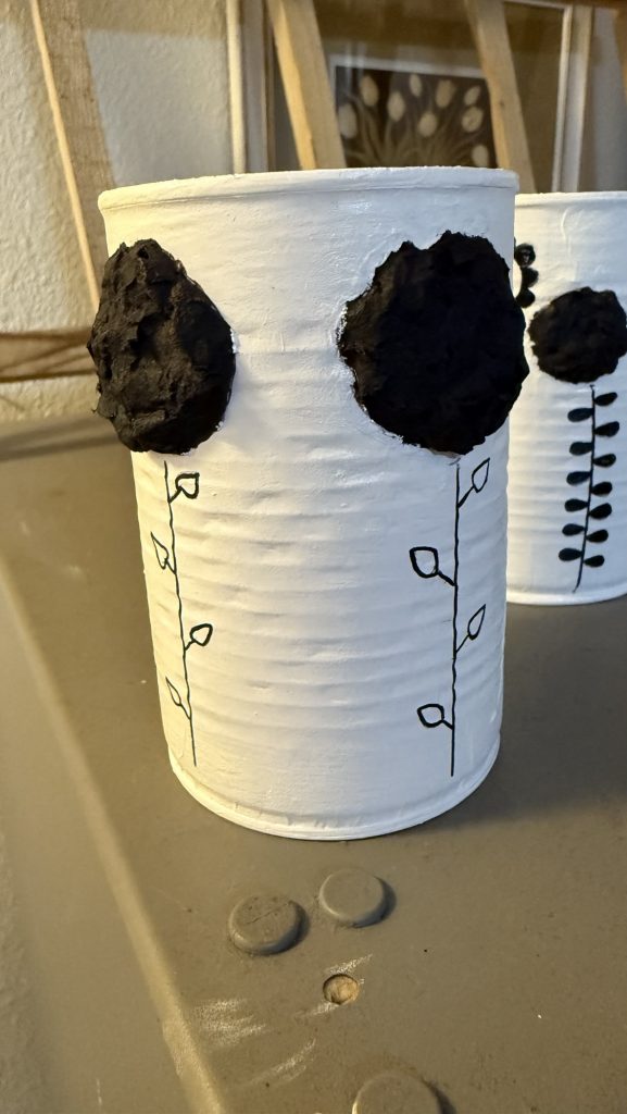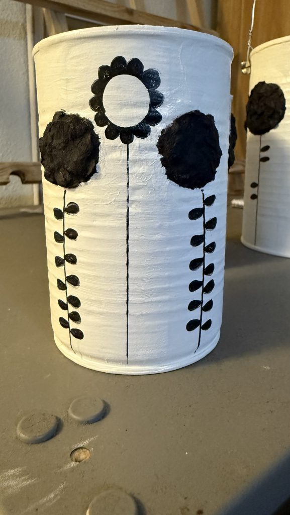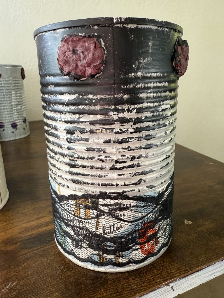 Here are more of these can crafts or tin can decor. Look on Pinterest! There are soooo many ideas on there for tin can crafts. I have so many cans because I feed my dogs vegetables everyday so I started saving them.