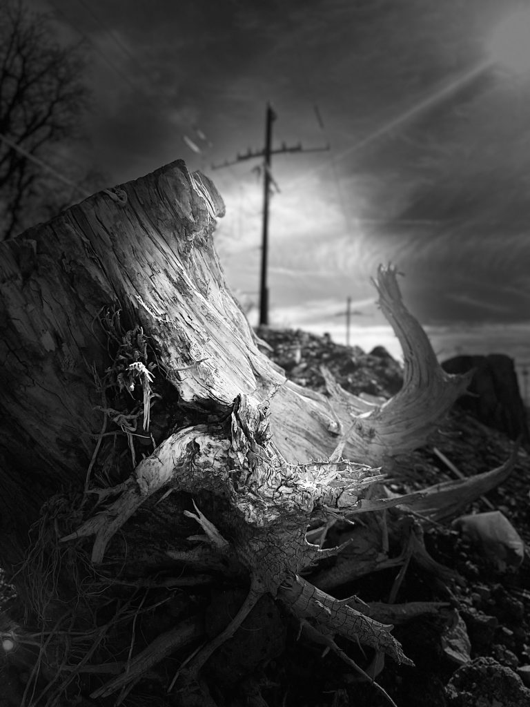 Tree stump continued by Margaret Leora Workman; Warponie Art