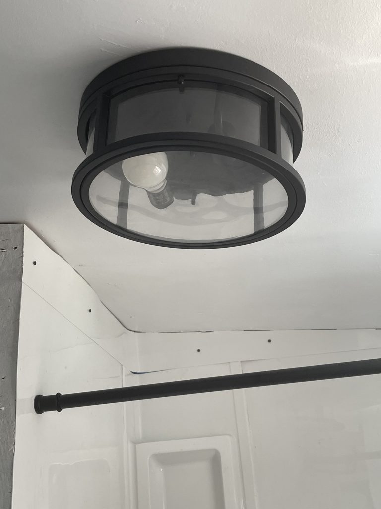 This is the light that I installed in the new bathroom. The electricity either wasn’t turned on! Or I messed up the installation of it. Sadness. It is technically an outside light that was almost half the price of the same style light that they had for inside of the house.