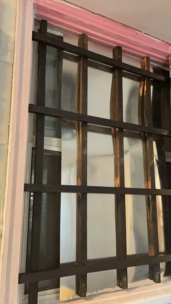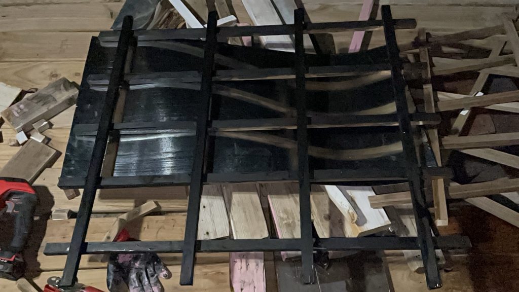 This is a wooden lattice that had gotten destroyed by vandalism in my yard so I cut it to size with a jigsaw. I painted with black craft paint and now I am going to make some pilot holes in the wood with a drill bit. Just take a drill bit that has a slightly smaller width than the body of the screw (where the threading is) and drill a hole in the wood. When you screw in the screw This pilot hole will help the wood not to split. Then I will screw on sheet metal to the back of it. If you drill pilot holes into the wood and the sheet metal at the same time that will help the homes to align. this will go in the new bathroom. This will go on the window that opens to the kitchen in the main part of the house, instead of curtains.