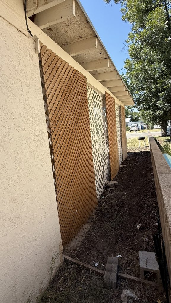 Here are the lattices that I had used for the partition in my back yard installed onto my carport. You know that old saying… ‘have to keep up with the Jones’ right?”