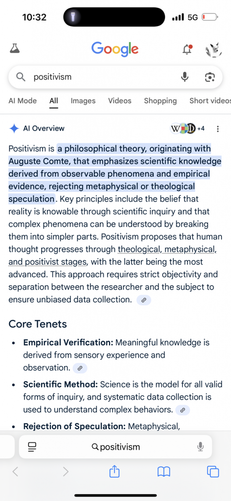 This philosophy rejects these two ways of deducing and receiving information. If you look at the world through either of these two paradigms then the philosophy of positivism will not be available to you. Then look at how it also states that the human mind goes through three processes of thought while deducing situations: theological, metaphysical and then lands at the positivist stage, which is the most advanced stage, they suggest. But aren’t these situations already proven through the experiments that already happened by using only empirical evidence? Since positivism rejects those two forms of evidence then how could a person use those paradigms to retrieve the evidence that has already been proven using empirical evidence by backtracking into the metaphysical and theological paradigms in order to retrieve the evidence again? Isn’t it already proven using empirical evidence?
