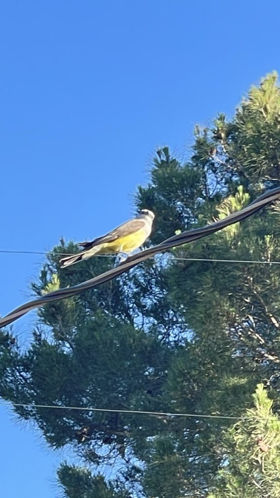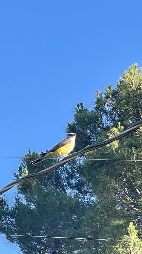 This is the yellow breasted chat! I am so excited to see one. I only saw two last summer around my house. I saw one yesterday and then today. I was lucky enough to already be taking pics of doves and it just flew right up onto the electric cord in my yard. They are quite fast, just like sparrows and finches. Some of the pics are blurry but that happens because I am taking the pic through my glass door. They are so beautiful!